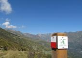 L’itinerario è indicato con segnaletica dedicata: frecce o segnavia e una placchetta con il logo in verde; negli incroci minori i segnavia bianco e rosso sono in vernice.