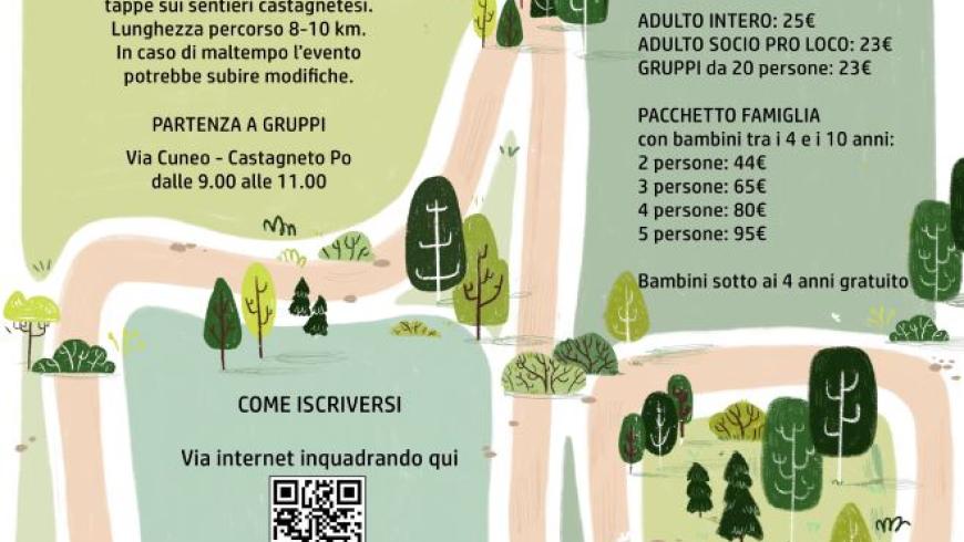 Il gusto si mette in cammino! Sei pronto a riscoprire i sentieri della Collina del Po? Ecco l'evento più atteso della primavera: una passeggiata enogastronomica a tappe dove la natura incontra i sapori autentici del territorio.   Un itinerario ad anello di 8-10 km immerso nel verde dei boschi castagnetesi, con partenze a gruppi dalle 9.00 alle 11.00: un viaggio dove ogni sosta è una sorpresa per il palato.   Si consigliano scarpe da trekking o sportive e abbigliamento comodo; i cani sono i benvenuti, purché al guinzaglio. !Attenzione: il percorso non è idoneo a passeggini e carrozzine.   Prenota subito!!!