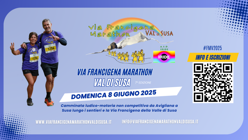 Modalità di iscrizioni e informazioni utili sul ritiro pettorali e altre norme e regolamento dell'iniziativa: https://www.viafrancigenamarathonvaldisusa.it/regolamento-2025-via-francigena-marathon-val-di-susa/