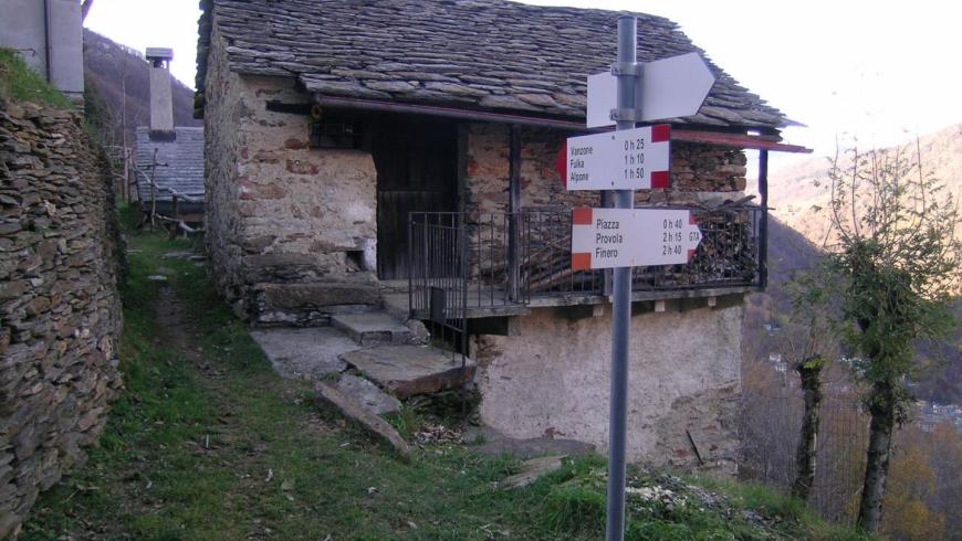 Dall’ostello di Falmenta si attraversa tutto il paese in direzione della chiesa. Qui si prende a sinistra la mulattiera che attraversa la parte alta dell’abitato e che sale a mezza costa in direzione Gurro costeggiando il fianco meridionale del Monte Riga. Con un ultimo tratto più ripido si raggiunge Mergugna, si scavalca la dorsale e quindi si scende a Gurro. Da qui, in parte su sentiero e in parte su strada, si sale a Piazza dove inizia un lungo tratto a mezza costa nei fitti boschi della valle alternando tratte in discesa con tratte in salita. Il sentiero è abbastanza stretto e con alcuni tratti esposti: prestare attenzione soprattutto in autunno con le foglie. Questo lungo sentiero conduce a Daila e con un ultimo tratto su bella mulattiera si raggiunge Provola. Da qui si può proseguire per Finero oppure si consiglia di imboccare la vecchia mulattiera per Ponte Creves che interseca più volte la nuova strada di accesso a Provola fino ad raggiungere il ponte sul Torrente Cannobino e risalire sulla Strada della Valle Cannobina a Creves. Si prosegue sulla carrozzabile per 350 m fino all’imbocco della galleria dove si prende la vecchia strada sulla destra (chiusa alle auto) che conduce al monumento a ricordo dell’eccidio del 12 ottobre 1944 in cui persero la vita i comandanti partigiani Alfredo Di Dio e Attilio Moneta. Si prosegue fino a incrociare lo sbocco della galleria, quindi si continua sulla carrozzabile e all’uscita di una ulteriore breve galleria si svolta a sinistra sulla strada per Cursolo che si segue fino in centro paese (disponibile un ostello comunale).