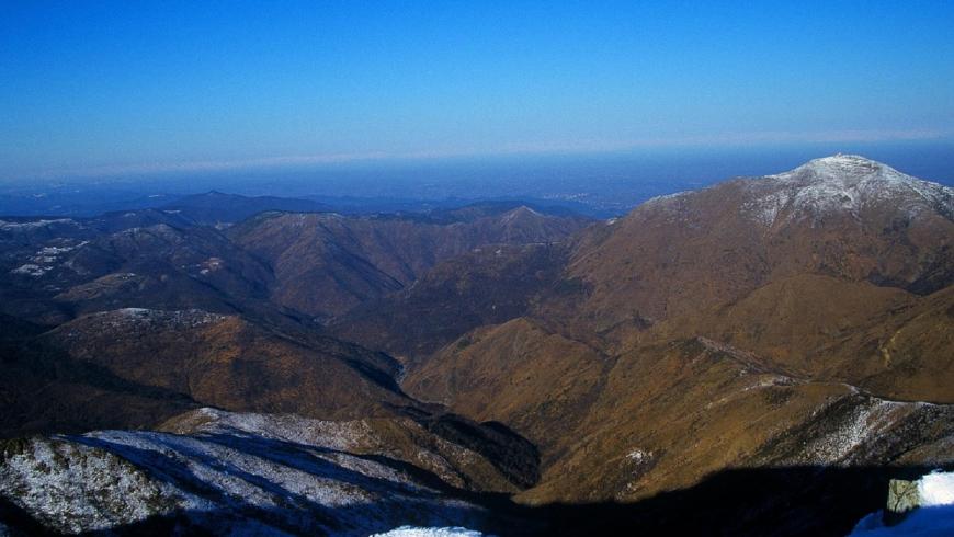 Nel primo tratto l’itinerario percorre per lunghi tratti lo spartiacque che separa la Liguria dal Piemonte. Lungo il percorso si aprono incantevoli scorci panoramici sulle valli cosparse di paesi e borghi, le alture e i forti che sormontano la città di Genova e i Laghi del Gorzente: l'orizzonte piemontese è delimitato dal verde dei colli, quello ligure dall'azzurro del mare. Con partenza dal Passo della Bocchetta (778 m) si procede in salita per circa 1,7 chilometri, lungo un tratto dell’Alta Via dei Monti Liguri, lastricata di ciottoli di fiume. Giunti al grande ripetitore situato sul Monte Leco, si segue il sentiero che si stacca a sinistra e prosegue lungo il versante ligure del monte, fino a raggiungere dopo una breve discesa la Colla del Monte Leco (960 m), sella erbosa che separa la valle del Rio Crovi da quella del Rio Campi. I valichi che interrompono il crinale appenninico costituiscono un ottimo punto di osservazione per il passaggio degli uccelli migratori e in particolare dei rapaci: non è raro veder volteggiare l'aquila reale, il falco pellegrino, il falco pecchiaiolo, il biancone. L’itinerario prosegue in salita lungo il versante nord del Monte Taccone (1.113 m): dopo un breve tratto in piano si raggiunge il Passo del Mezzano o Reopasso (1066 m), in corrispondenza del quale l’Alta Via dei Monti Liguri scende a sinistra verso il Lago Bruno, mentre l’itinerario prosegue tra le praterie d'alta quota in direzione del Monte delle Figne (1.172 m), la cima più alta del Parco. Da qui l’itinerario percorre un breve tratto in cresta e infine scende in direzione della Cascina Carrosina. Una volta raggiunta la cascina si ignora il sentiero che si stacca a sinistra e si prosegue lungo il percorso 404 fino a raggiunge il ventoso Passo della Dagliola (856 m). Seguendo le indicazioni per Ponte Nespolo si imbocca il sentiero a sinistra (405), che scende tra le rocce lungo il versante meridionale del Monte Tobbio, si inoltra in un castagneto, tocca i ruderi della cascina Cian du Fó e raggiunge le pertinenze di cascina Nespolo. Nel bosco è possibile ammirare i tronchi scavati dal tempo di alcuni castagni secolari, veri e propri monumenti naturali. Sono gli ultimi esemplari di castagni da frutto, testimoni della cosiddetta “civiltà del castagno”, nata nel 1500 e definitivamente tramontata, dopo alterne vicende, nei primi decenni del 1900. La coltivazione dell' "albero del pane”, così veniva definito il castagno, era pratica diffusa in tutto l'Appennino per la produzione delle castagne, del legname e per l'estrazione del tannino. A Capanne di Marcarolo ha permesso la selezione di 22 diverse cultivar, molte delle quali sono oggi custodite presso l'arboreto dell' Ecomuseo di C.na Moglioni. La tappa si conclude proseguendo lungo lo sterrato che collega cascina Nespolo alla SP 165: si incontra sulla sinistra la deviazione per Ponte Nespolo, che conduce direttamente al punto tappa “Baita del Gorzente”.
