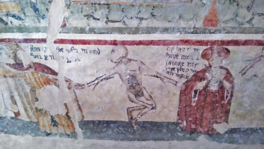 La Cappella di San Pietro è una costruzione risalente al XIII secolo dove spiccano quattro guglie ed un piccolo campanile a vela. Di particolare rilievo è la decorazione del registro inferiore che corre lungo le pareti; qui un ignoto pittore, probabilmente locale, tardo-quattrocentesco, raffigurò una Danza Macabra. Tale figurazione, di origine francese e nordica, è rarissima in Piemonte: per ora se ne conosce soltanto quella della chiesa di San Martino di Saluzzo, nella quale restano solo due figure.