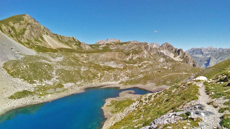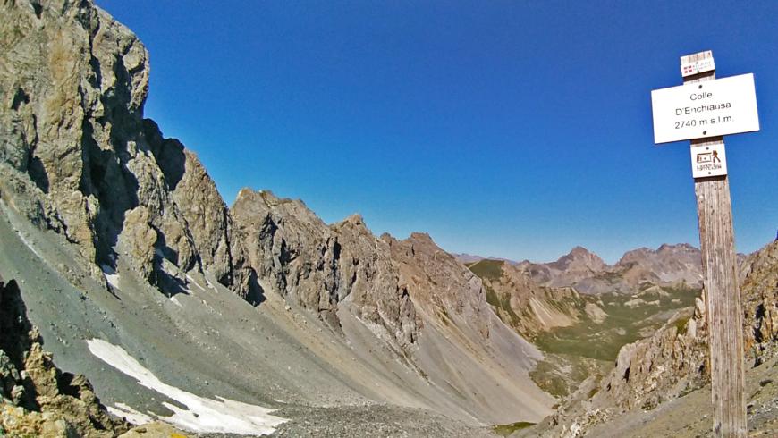 Dalla frazione di Chiappera (1619 m) si segue per un centinaio di metri la carrozzabile verso valle fino al Pilone Bastier, dove si imbocca l’evidente sentiero a destra che dopo un primo tratto pianeggiate diventa erto e guadagna dapprima Grange Pausa e successivamente i 2200 m della Sorgente del Baciasset. Qui giunti si tralascia il bivio sulla destra per il colle Sautron, per inerpicarsi sul sentiero che raggiunge il Passo della Cavalla, discende nella conca dei laghetti delle Munie e raggiungere, infine, il Bivacco Bonelli e il lago Apsoi. Da qui si ignora la deviazione sulla sinistra e si sale al colle d’Enchiausa (2736 m) sotto l’imponente parete nord del Monte Oronaye (3100 m). La discesa lungo il vallone omonimo supera il Bivacco A.Valmaggia e raggiunge la borgata più alta del vallone di Unerzio, Viviere (1709 m).