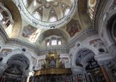 La chiesa è frutto del voto fatto nel 1557 da Emanuele Filiberto in occasione della vittoria nella battaglia di San Quintino, svoltasi il 10 agosto (San Lorenzo) contro i francesi; tuttavia solo nel 1634 i padri teatini si fanno carico della costruzione, su un lotto appositamente ceduto dal duca. Dalla presa in carico alla costruzione passano tuttavia ancora diversi anni e solo con l’arrivo a Torino di Guarino Guarini (a sua volta teatino), nel 1666, il cantiere prende avvio. Preceduta dall’Oratorio dell’Addolorata, quasi un nartece, realizzato da Antonio Dupuy nel 1846, la chiesa ha impianto centrale, con quattro cappelle radiali, alto tamburo, e copertura con cupola composta su di uno scheletro di 16 fascioni tra loro incrociati, straordinaria composizione statica tipica di Guarini. Tra le fasce intrecciate si aprono ampi finestroni che inondano di luce l’ambiente.