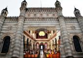 La sinagoga, nella sua forma attuale, risale all'Ottocento - le ultime ristrutturazioni sono del 1885 - anche se da secoli a Cuneo esisteva una sala di preghiera, più modesta, nella stessa area. La facciata del luogo di culto è nel complesso sobria, separata dagli altri fabbricati del ghetto da due colonne con fregi corinzi. Entrando nell'edificio una prima rampa di scale conduce a un'aula scolastica, mentre al secondo piano si trova la sala della sinagoga, di forma quadrata e con la disposizione tipica delle sinagoghe dell'emancipazione (realizzate dopo lo Statuto albertino, 1848): i banchi sono rivolti in direzione del podio (tevà) e dell'armadio (aron), uno splendido esempio di barocco veneziano. Alla sinistra di quest'ultimo è collocato un grande pulpito, uno dei pochi esempi del genere, a imitazione di quelli delle chiese cristiane. Al fondo della sala si trova il matroneo, cui si accede tramite un'ultima rampa di scale.