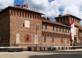 E’ il più grande e conosciuto dei castelli del Novarese. Fatto costruire da Galeazzo Sforza su progetto dell’architetto militare Ambrogio Ferrari fra il 1476 e il 1496, si presenta oggi come una struttura rettangolare piuttosto bassa e massiccia, con quattro torri poste agli angoli e due all´ingresso a rafforzamento del ponte levatoio. Circondato da un largo fossato e da un muro di cinta, ha conservato una bella merlatura ghibellina che armonizza l’intera costruzione. Al suo interno si trovano la biblioteca comunale, il Museo d’Arte Contemporanea e le sale espositive per mostre e convegni.