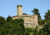 Il complesso dei due castelli, realizzati fra il XII e il XIV secolo, e trasformati nell´Ottocento, sovrasta il torrente Viana ed è situano a nord dell’insediamento storico medievale, cui si raccorda mediante un sistema di giardini e terrazzamenti. Il “castelvecchio” edificato dai Valperga, denuncia ancora nelle sue strutture l’origine medievale (probabilmente del XIV secolo) e numerose stratificazioni tre-quattrocentesche. Il castello inferiore, conosciuto come “castelnuovo”, che prima degli interventi ottocenteschi conservava parti medievali in vista, subisce un intervento di ristrutturazione evidente nel Seicento. Il primo, presenta ancora due torri d´angolo, di cui una altissima e merlata e, nelle pareti, alcune finestre gotiche in cotto. Il secondo, invece, viene radicalmente trasformato nella prima metà dell’Ottocento con l’inserimento di una nuova ala.