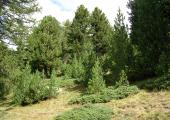 Le porzioni subalpine del bosco, si sviluppa fino a quote di 2500 m, con singoli esemplari che superano i 2700 m di quota, in ambiente rupicolo, anche di difficile accesso; vi si trovano gruppi di pini vetusti, di età superiori ai 500 anni e probabilmente alcuni quasi millenari, meritevoli di valorizzaione e di di approfondimenti conoscitivi dendrocronologici.